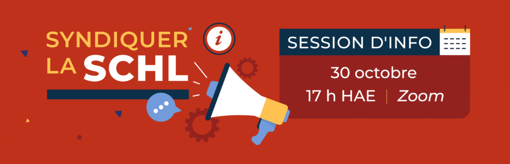« Comme vous le savez, nous avons connu des moments difficiles à la SCHL. Pensez aux détachements forcés et aux annonces de licenciements qui ont laissé des centaines de nos collègues dans une situation d’insécurité des plus totale. En étant syndiqués, nous ne serons plus seuls vis-à-vis notre employeur. Nous allons avoir notre voix auprès de la direction pour faire valoir nos préoccupations et nos inquiétudes. Ensemble, nous serons plus forts, nous serons respectés »